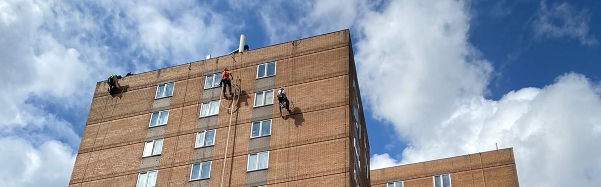 “This project comprised of the installation of thermal insulation to brickwork cavities in 15 multi-storey high rise tower blocks. The scope of works included abseiling down the elevations of the tower blocks, drilling holes in which to insert the pumping hoses and blowing insulation into the cavities. At the time of writing this we are the only company in the UK able to offer this fully funded service to social housing providers.